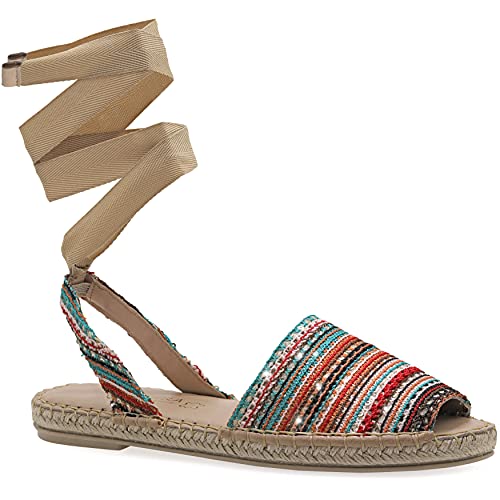 Emmanuela colorato espadrillas realizzato in tessuto lavorato a maglia, pancetta di peep toe boho chic con tacco a cuneo basso, espadrillas per pizzo, fatto a mano in Grecia, Multicolore 2, 41 EU