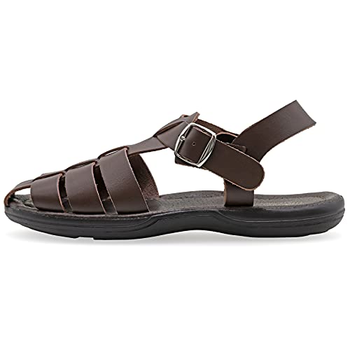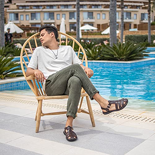 Emmanuela Comodo sandali greci in pelle anticato per uomo, sottopiede imbottita sandali in pelle fatti a mano, scarpe estive regolabili di alta qualità con fibbia, marrone, 46 EU