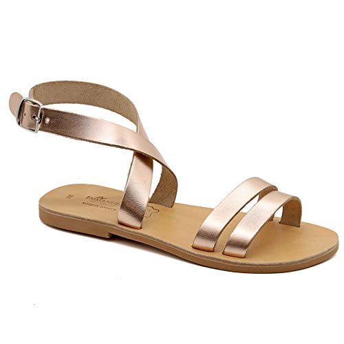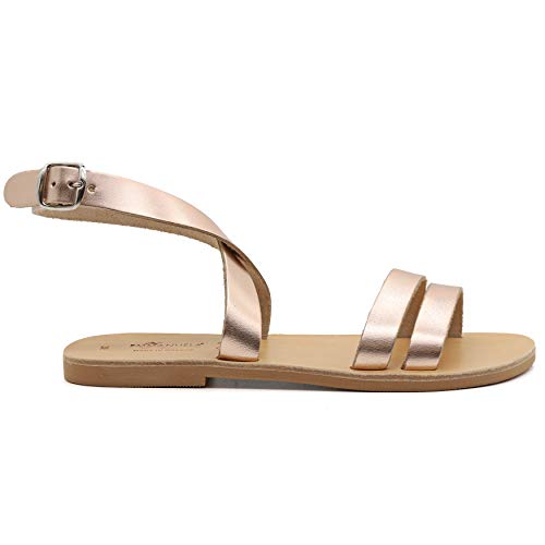 Emmanuela Sandali in pelle piatta a mano greco, sandali con cinturini alla caviglia di alta qualità con fibbia regolabile, scarpe estive con polsino della caviglia, Oro rosa, 41 EU