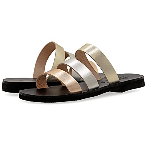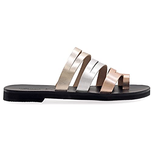 Emmanuela Sandali in stile antico in stile greco, sandali in pelle fatti a mano in pelle, sandali strappy, scarpe estive di alta qualità, boho chic slider, Multicoloree 1, 38 EU