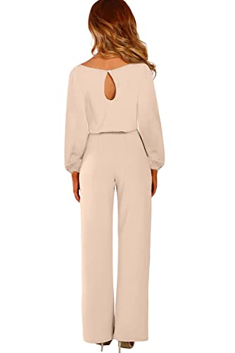 Emmarcon tuta elegante da donna, manica lunga, vita alta con cintura rimovibile, uso casual o per cerimonia e festa (L, Beige)