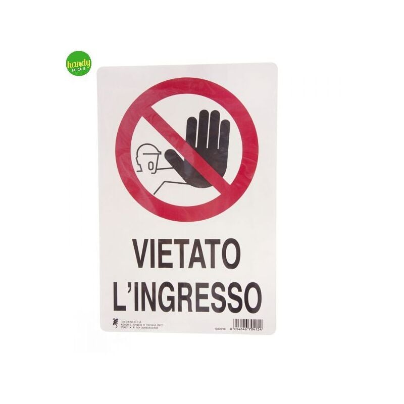 Dalla linea di articoli dedicati alla segnaletica e alla ferramenta a marchio Tre Emme, CARTELLO VIETATO INGRESSO di colore bianco, interamente in polionda, è ideale per segnalare un'area dove è vietato l'ingresso.