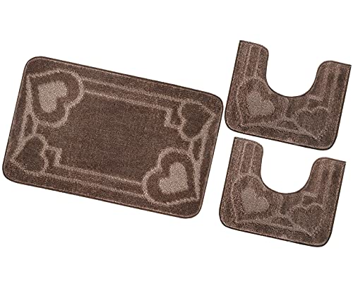 Emmevi Tappeto Bagno Parure Soffice Antiscivolo Assorbente Lavabile mod.MOOREA 8 SET 3 PEZZI MARRONE