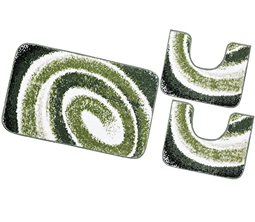 Emmevi Tappeto Bagno Spirale Set 3 Pezzi Morbido Antiscivolo Lavabile MOD.Magnolia (F) Set 3 Pezzi Verde