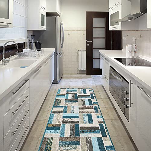 Emmevi Tappeto Cucina Patchwork Passatoia Antiscivolo Casa Design Vintage Mod.Chalet VIP Dis.39 54x240 BLU