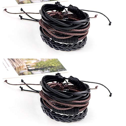 EmNarsissus 4 Pezzi/Set Multistrato Vintage Fai da Te Uomo Cinturino in Pelle Intrecciata Casual Semplice Braccialetto Braccialetti Gioielli miglior Regalo di Compleanno