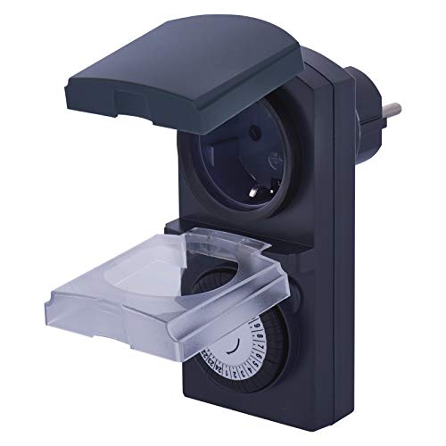 EMOS Timer meccanico esterno / presa Schuko IP44 per esterni / sicurezza bambini / coperchio ribaltabile, manopola girevole 20 x 8 cm