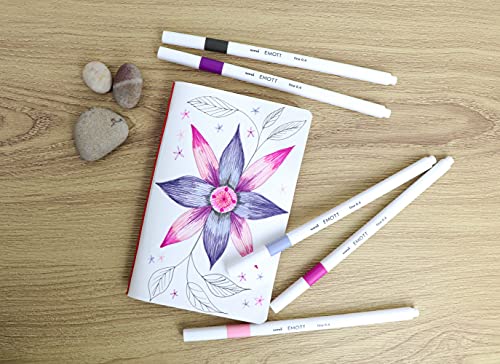 EMOTT, Fineliner a base d'acqua. Set di 5 fineliner a punta fine da 0,4 mm resistente all'acqua e alla luce. Colori FLORAL (nebbia, lilla, malva, rosa puro, rosa baby)