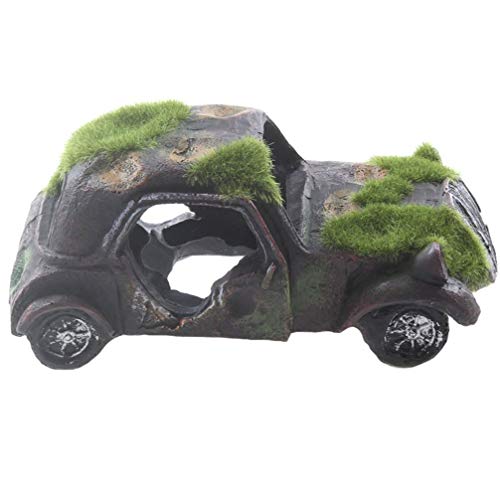Emours Imitazione Auto Relitto Acquario Ornamento Auto Pesci Serbatoio Subacqueo Paesaggio Decor con Moss Floccaggio, 16 x 7,9 x 5,8 cm