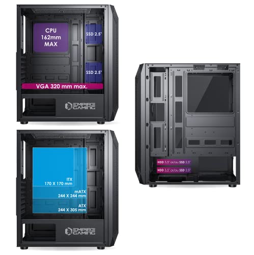 EMPIRE GAMING - Case PC da Gioco Ruby - ARGB Mid-Tower ATX, mATX, ITX -Frontale Mesh -Pannello Laterale in Vetro Acrilico -4 Ventilatori 3 Pins 5 Volt LED RGB Indirizzabile 120 mm -MB Sync- Nero