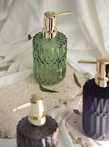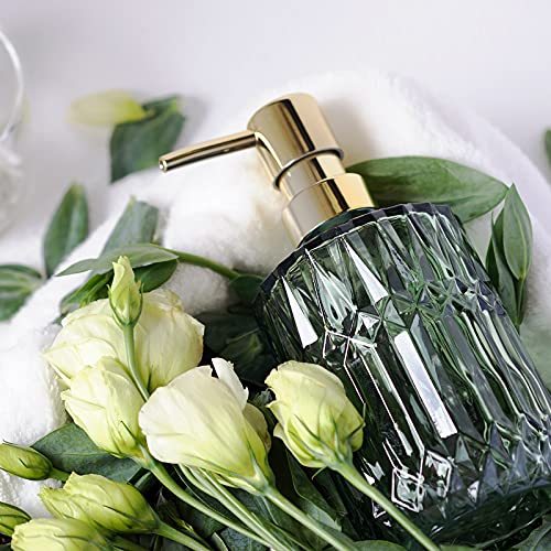 EMPO Dispenser per sapone in vetro trasparente con pompa in plastica ABS, dispenser per liquidi adatto a cucina, bagno (Verde)