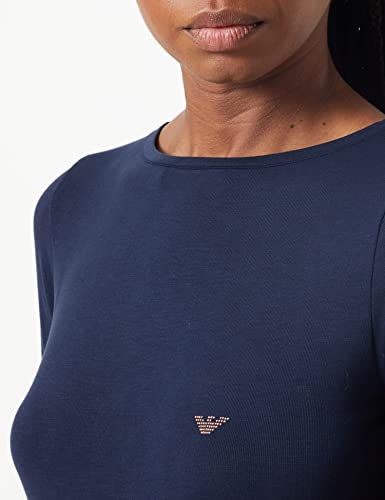 Emporio Armani Boat Neck T-Shirt Essential Studs Logo, T-shirt Donna, Blu (Marine), S