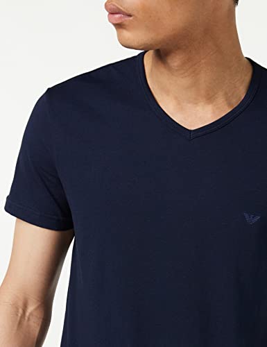 Emporio Armani Uomo 2-Pack V Neck T-shirt Pure Cotton Maglietta, Blu (Marine/Marine), L