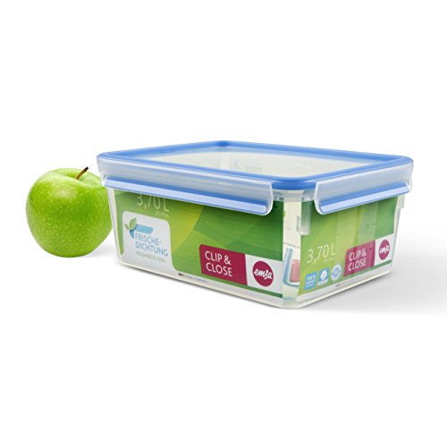 Emsa 508546 rettangolare contenitore di alimento con coperchio, 3.7 litri, trasparente / blu, Clip & Chiudi