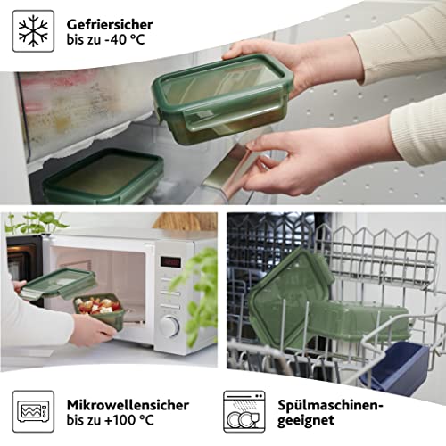 Emsa, Contenitore Salvafreschezza Clip&Close Eco 1 Litro, Contenitori Ermetici per Alimenti, Contenitore Rettangolare con Materiali di Origine Vegetale, Chiusura Ermetica e Coperchio, Verde