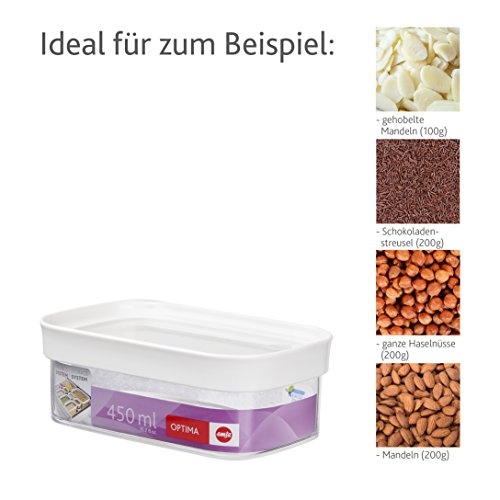 Emsa Optima Contenitore Provviste, Rettangolare, Trasparente/Bianco, 0.45 L