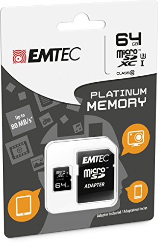Emtec 64 GB microSDXC Platinum memoria flash 64 GB classe 10 UHS-I (64 GB, MicroSDXC, Classe 10, UHS-I, 80 MB/s, Nero