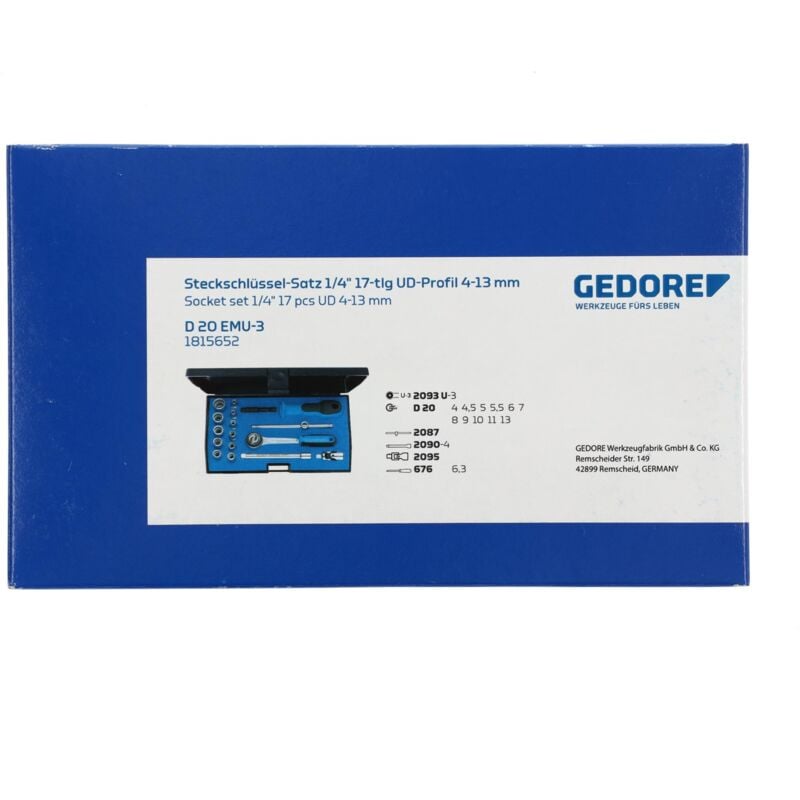 Con accessori in acciaio al vanadio 31CrV3 GEDORE, Con leva a cricco reversibile a dentatura fine, In cassetta di plastica, Misure: 200 x 120 x 38 mm, Dimensioni: 200 x 120 x 38 mm