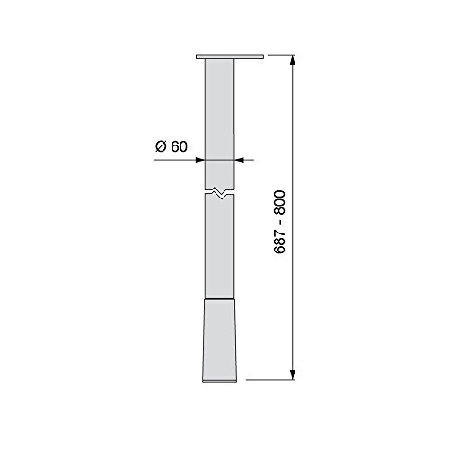 Emuca 2034725 Gamba per Tavolo Diametro 60 Altezza Regolabile 687-800mm in Acciaio Verniciato Alluminio