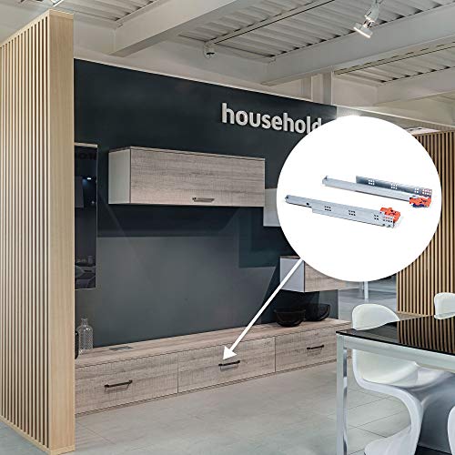 Emuca 3052505 Coppia di Guide Invisibili per Cassetto, Estrazione Totale, Chiusura Soft, con Agganci, Zincato, 490 mm