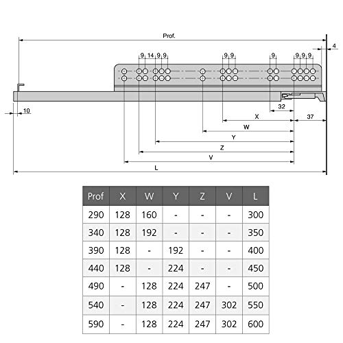 Da utilizzare con cassetti di profondità 490mm (lunghezza nominale della guida 500mm)