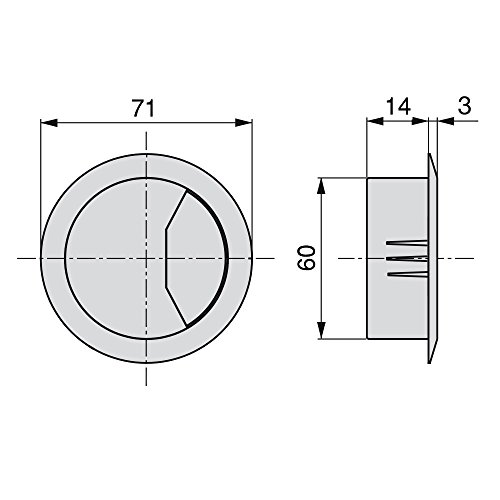 Emuca 3196321 Confezione da 20 Passacavi Rotondi Diametro 60 mm per Incastrare in Scrivania/Tavolo in Plastica Grigia