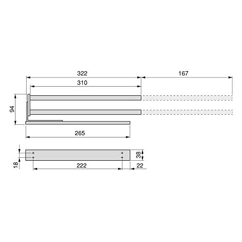 Con 2 bracci lungo 310 mm che possono girare 90°