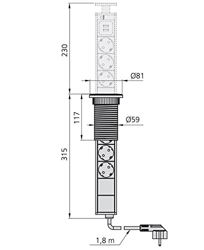 3 prese tipo F schuko (potenza massima fino a 3500W-16A) per collegare tutti i vostri apparecchi elettronici sia della cucina che dell'uficcio.