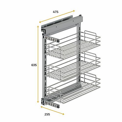 Emuca - Carrello estraibile con sistema di chiusura morbida, Telescopico cassetto estraibile, 300mm, Cromato brillo, Acciaio