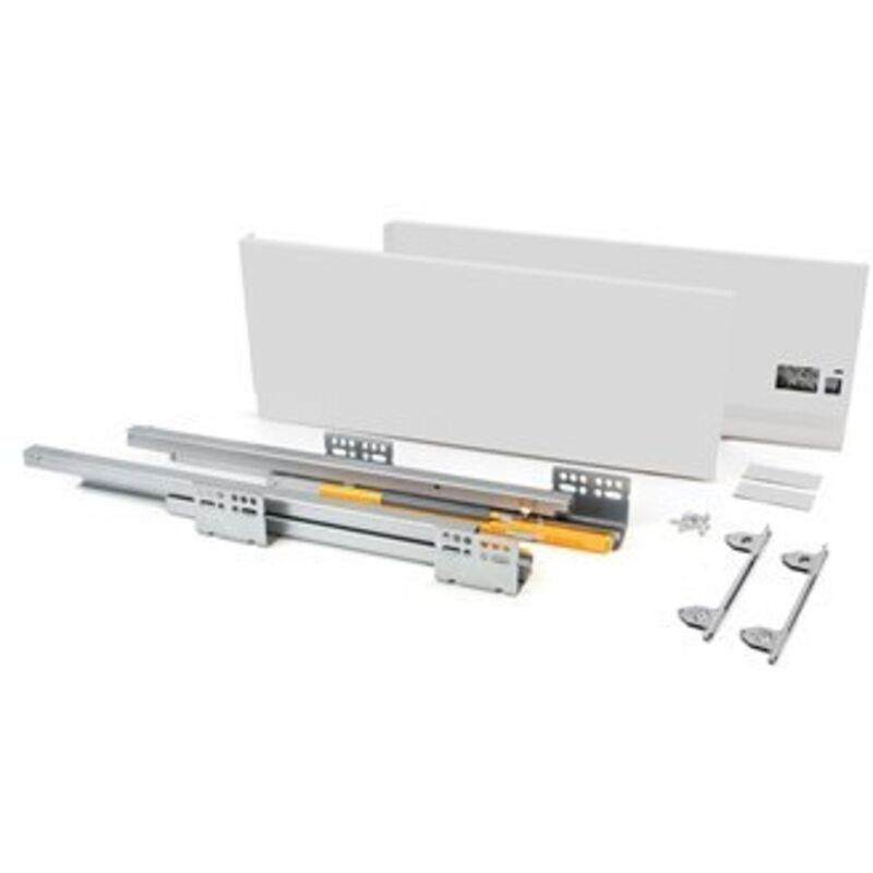 Il cassetto da cucina e bagno Concept � disponibile in formato kit con tutti gli accessori necessari per il montaggio. Si distingue inoltre per la sua grande capacit� di carico, sopporta fino a 30 kg per cassetto. Include guide di estrazione totale con una chiusura soft, set di ganci e profili disponibili con finiture verniciate bianco o grigio antracite. Avr� solo bisogno dei pannelli tagliati della dimensione corretta per il fondo, la schiena e il frontalino del cassetto. Kit di accessori necessari per il montaggio del cassetto esterno di altezza 185 mm e profondit� di 400 mm, a eccezione di frontalino, retro e fondo. Include di guide ad estrazione totale, set di profili e un set di ganci frontali per cassetto esterno. Le guide sono ad estrazione totale con chiusura soft e portata massima di 30 kg. Prodotto in acciaio verniciato color bianco. 1 set di guide, 1 set di profili, 1 set di ganci frontali, viti e istruzioni di montaggio incluse H 185 x Prof. 400 Verniciato bianco Acciaio