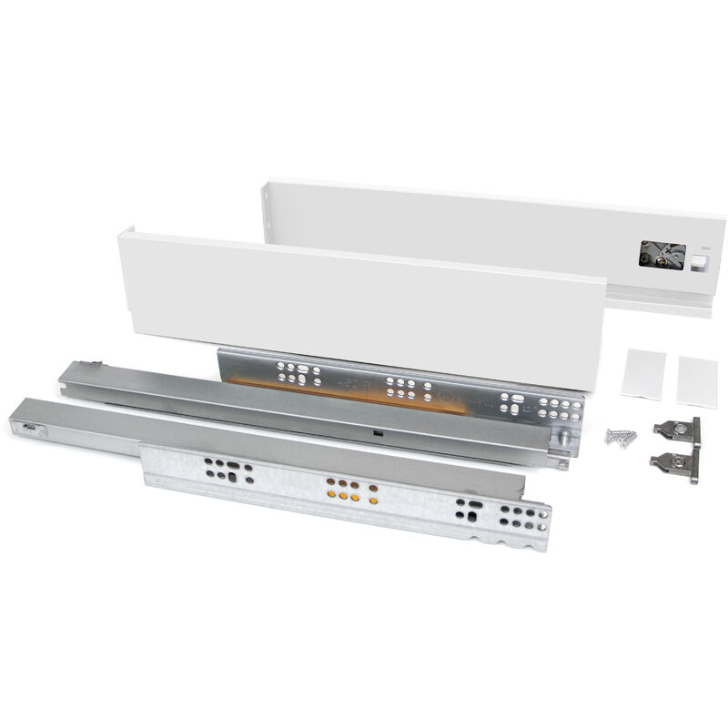 Kit per cassetto cucina e bagno Vertex con tutti gli elementi necessari per il suo assemblaggio. � la soluzione ottimale per i mobili della tua cucina, bagno o armadio con un design elegante in colore grigio antracite�e bianco . Ogni kit � composto da tutti gli elementi necessari per il montaggio di un cassetto esterno di� 83 mm di altezza in moduli con uno spessore laterale di 16 mm . Include: due sponde laterale, un set di guide con chiusura soft, un set di coperchi di rivestimento e i fissaggi per la parte anteriore del cassetto. Le sponde laterale in metallo sono realizzate in acciaio con finitura verniciata grigio antracite e bianco, consentono di regolare la parte anteriore del cassetto � 2mm in verticale e � 1mm in orizzontale . Le guide sono di estrazione totale con chiusura ammortizzata e hanno una capacit� di carico massima di 40 Kg per il cassetto. Avr� solo bisogno dei pannelli tagliati della dimensione corretta per il fondo, la schiena e il frontalino del cassetto. Kit