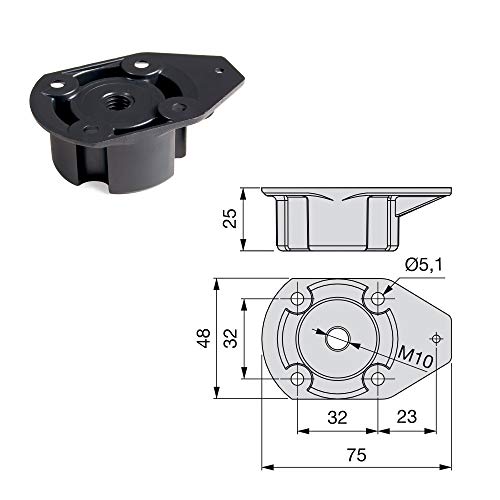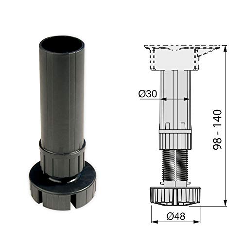 Emuca - Gambe per mobili, Piedi per mobile in plastica colore nero, Set di 8 piedini regolabili di altezza 100mm
