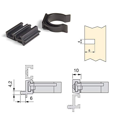 Ogni set comprende: 4 piedini regolabili, 4 piastre di fissaggio al mobile, 4 viti M10 di montaggio, 4 tappi coprivite e 2 clips per zoccolo.