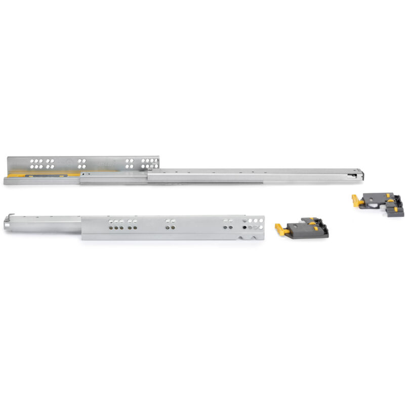 Guide sincronizzate con estrazione totale per cassetti con profondità 290 mm. Progettate per mobili della casa. Possiedono agganci per facilitare il montaggio/smotaggio rapido del cassetto dalla guide. Regolazione in tre direzioni, verticale +3 mm, orizzontale ± 1,5 mm e profondità +3 mm. Dispongono di autochiusura e pistone ammortizzante in entrambe le guide, che fornisce una chiusura soft del cassetto. Carico massimo di 30 kg. Si forniscono in set completi con lato destro e sinistro. La sua rotazione avviene su rulli che permetto lo scivolamento guidato in senso orizzontale e verticale. Guide a scomparsa Silver per cassetto ha un'alta qualità e un miglior funzionamento nei mobili per la casa. Queste guide forniscono un'estrazione totale del cassetto. Dispongono di autochiusura e pistone ammortizzatore in entrambe le guide, che forniscono una chiusura soft del cassetto. Inoltre sono note per avere un aggancio per un montaggio facile e uno smontaggio rapido del cassetto dalle guide.