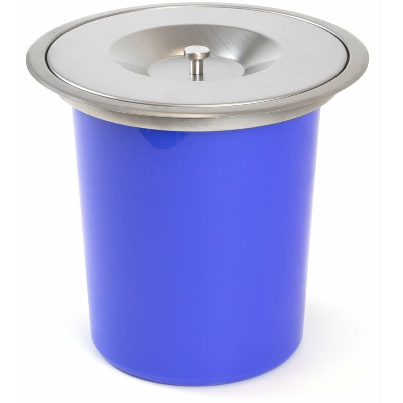 Pattumiera Pattumiera da Incasso per Piano Cucina 6 Litri in Acciaio e Plastica Emuca La pattumiera da incasso per il piano de la cucina permette di gettare comodamente gli avanzi di cibo e previene i cattivi odori grazie al suo coperchio in acciaio inossidabile. È stato fabricatto per essere integrato nel piano di lavoro della cucina offrendo un accesso più facile. Ha una capacità totale di 6 litri e richiede uno spazio interno minimo di 270 mm, l'altezza del contenitore è di 265 mm. Per la sua installazione è necessaria una lavorazione di 210 mm di diametro. Ha due anelli d'acciaio, uno per garantire la stabilità del bidone e l'altro per posizionare e trattenere i sacchetti della spazzatura. La fornitura comprende un contenitore da 8L, un coperchio due anelli e le istruzioni di montaggio. Realizzato in plastica blue e acciaio inossidabile. Caratteristiche Tecniche Pratica pattumiera da incasso per cucina con coperchio i capacità di 6L. Altezza contenitore: 265 mm. Richiede uno