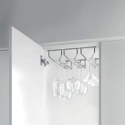 Emuca - Portabicchieri in 4 Linee per mobili, Porta Bicchieri per mensole o Bar, 340 mm, Acciaio Cromato