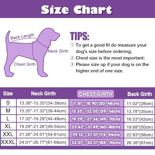 6 taglie 13 colori disponibili: l'abbigliamento per cani per la stagione fredda è di 6 taglie (S, M, L, XL, XXL, XXXL) e 9 colori. Si prega di misurare il vostro cane e confrontarlo con la nostra tabella delle taglie. Consigli: se la taglia è compresa tra 2 taglie, o se il vostro cane ha un buid robusto, si prega di selezionare una taglia più grande.