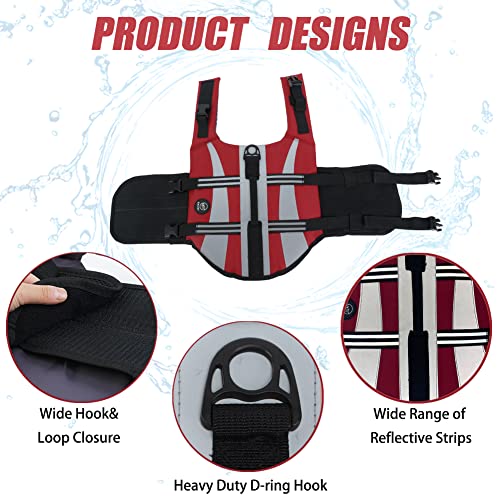 EMUST Giubbotti di salvataggio per cani, regolabili per barca, giubbotti di salvataggio ad alta visibilità per cani, costume da bagno di sicurezza per cani, rosso, S