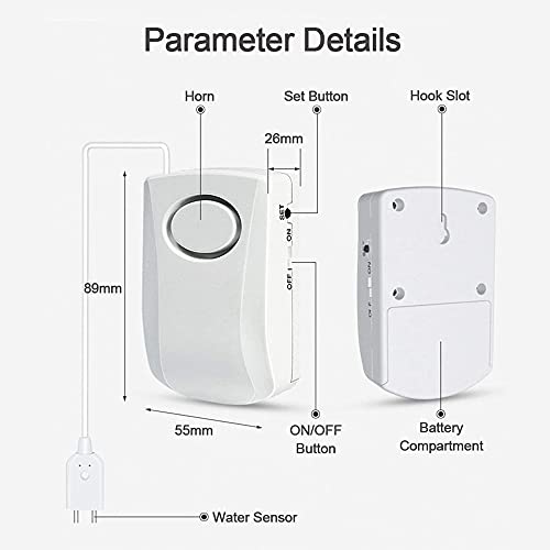 【Voce di allarme forte】 Allarme da 130 dB per avvisarti finché l'acqua non si asciuga o il sensore si spegne, a basso costo ed efficace allarme per perdite d'acqua per prevenire danni all'acqua a casa tua.