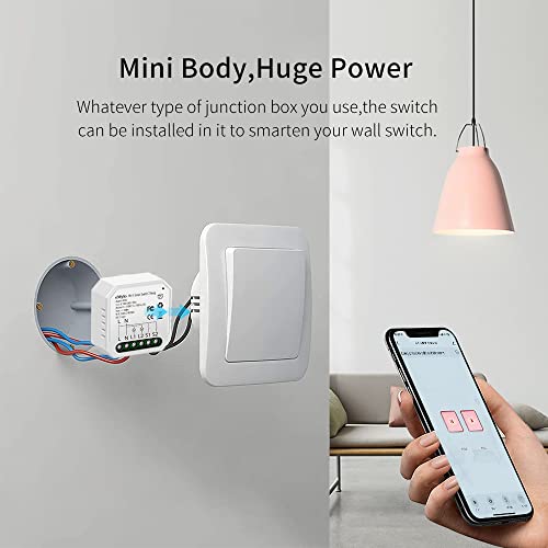 【Semplicità di installazione】 L'interruttore intelligente wireless è semplice da installare e utilizzare, è progettato in modo compatto e leggero, facile da cablare, si può facilmente posizionare l'interruttore intelligente nella scatola di giunzione incorporata. Può essere utilizzato con l'interruttore a parete tradizionale. non è necessario un gateway intelligente.