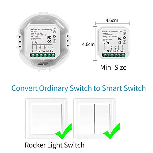 EMylo Interruttore Wifi 2 Canali, Smart Interruttore Luce Wifi Compatibile con Alexa e Google Home, Telecomando APP, Funzione Timer, AC 220V 230V Interruttore Smart per la domotica