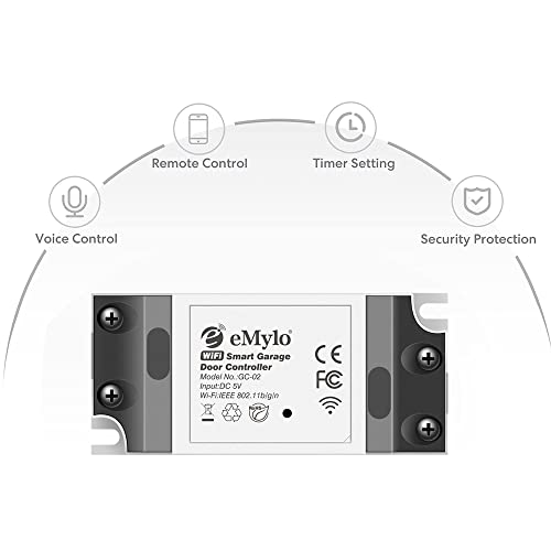 EMylo WIFI Apriporta del Garage Telecomando Intelligente Universale per Porta del Garage Porta del Garage con Controllo App, Controllo Vocale Compatibile con Alexa Echo, Google Home