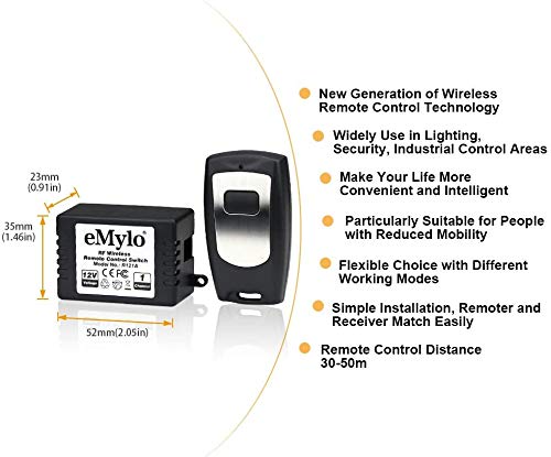 【Più flessibilità】-- L'interruttore relè RF eMylo adotta la tecnologia di codifica wireless non direzionale. Il ricevitore e trasmettitore RF programmabili consente un controllo indipendente senza interferenze reciproche e può essere configurato in modo flessibile in quantità e modalità operative.