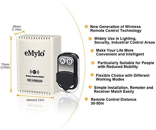 【Più flessibilità】-- L'interruttore relè RF eMylo adotta la tecnologia di codifica wireless non direzionale. Il ricevitore e trasmettitore RF programmabili consente un controllo indipendente senza interferenze reciproche e può essere configurato in modo flessibile in quantità e modalità operative.
