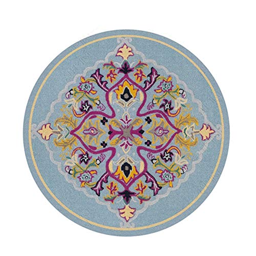 EmyTock - Tappeto rotondo in cotone, tessuto a mano, motivo mandala europeo, antiscivolo, per soggiorno, camera da letto, studio, tappeti per tavolino o pavimento, diametro 120 cm