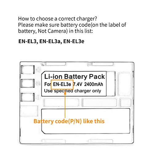 Come scegliere? Assicurati che il modello della batteria (sull'etichetta della batteria, non fotocamera) in questo lista: EN-EL3, EN-EL3a, EN-EL3e.