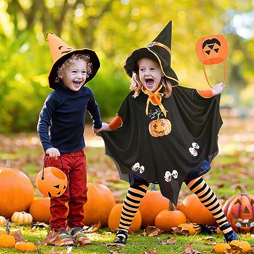 ENAIAH Costume Halloween Bambino,Mantello da Strega di Halloween Pipistrello Mantello Arancia Vestito Halloween Zucca Costume da Mantello di Zucca con cappello,Adatto Altezza 90-150cm (A)