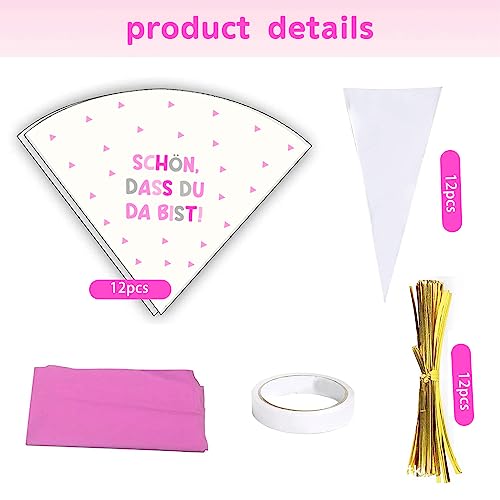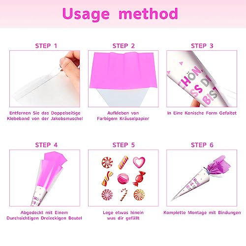 Sacchetto per la scuola per l'inizio della scuola: riceverete 12 sacchetti di carta da zucchero colorati, 12 sacchetti triangolari trasparenti, 5 carta crespa rosa, 18 fascette dorate e 1 adesivo biadesivo. Un arcobaleno di colori e una quantità sufficiente per la tua festa di ritorno a scuola.