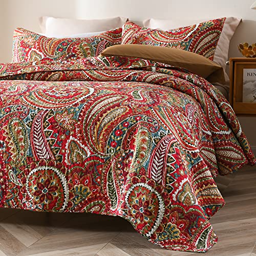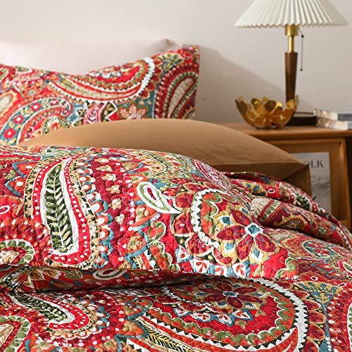 Set trapunta reversibile: processo di cucitura intenso combinato con processo naturale di morte delle piante che rende il copriletto più resistente e confortevole, motivo floreale paisley su due lati è reversibile da usare.
