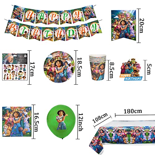 Encanto Stoviglie di Compleanno Set, Encanto Party Set,Set di Articoli per Feste Piatti per Feste Tazze Tovaglioli Tovaglia e Addobbi